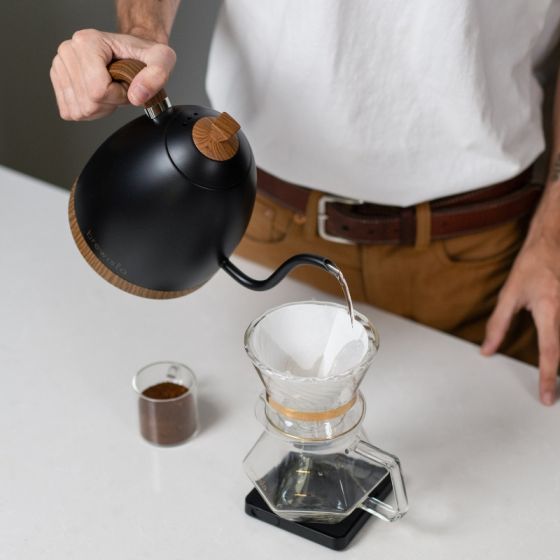 The Brewista Artisan Gooseneck Kettle in Matte black is both stylish and functional. With a 1L capacity, the Artisan is perfect for pour over, and feels balanced and comfortable in the hand when pouring.
